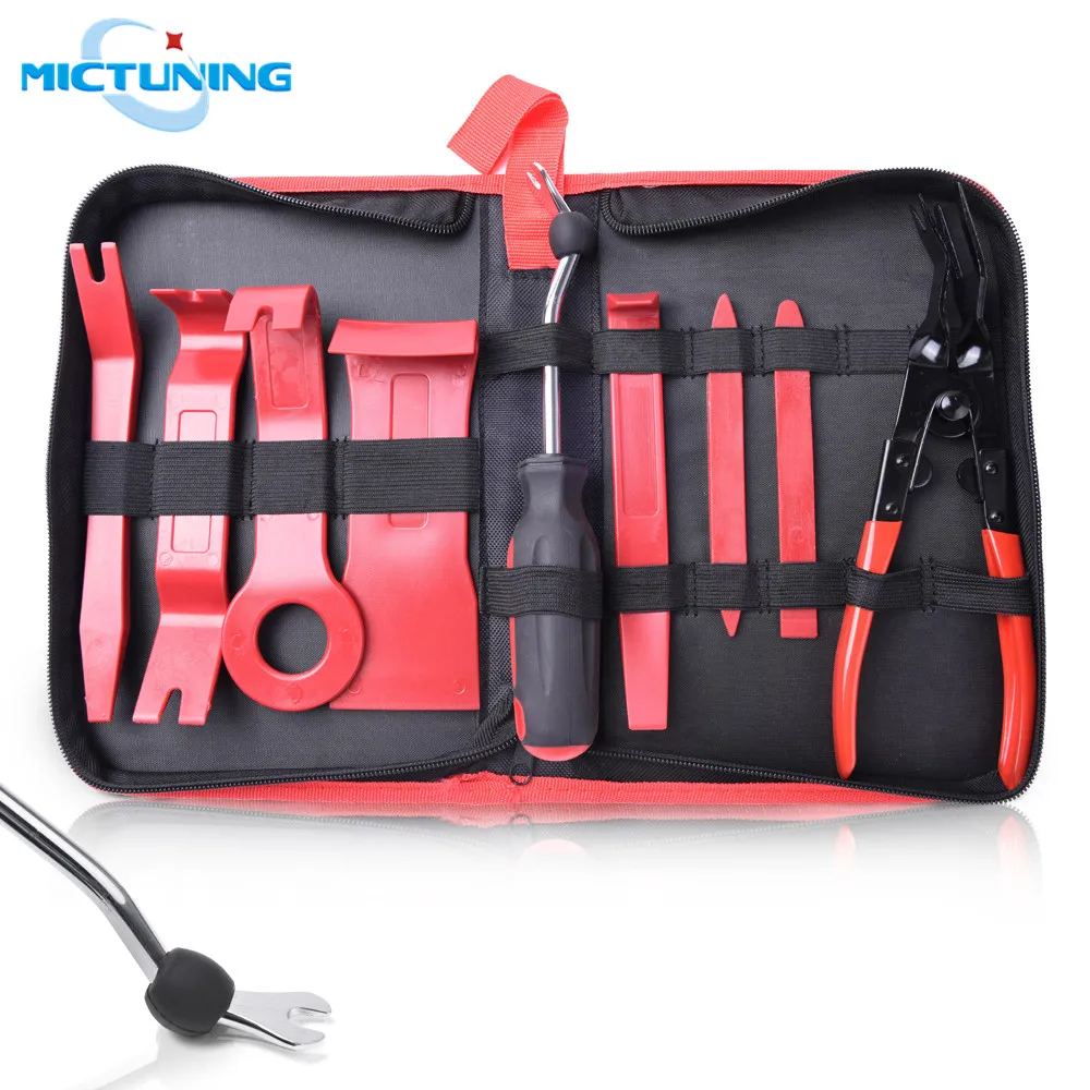 Best Seller MICTUNING Upgraded 9pcs Car Panel Trim Removal Tools Set w/ Fastener Remover Clip Plier for Audio D